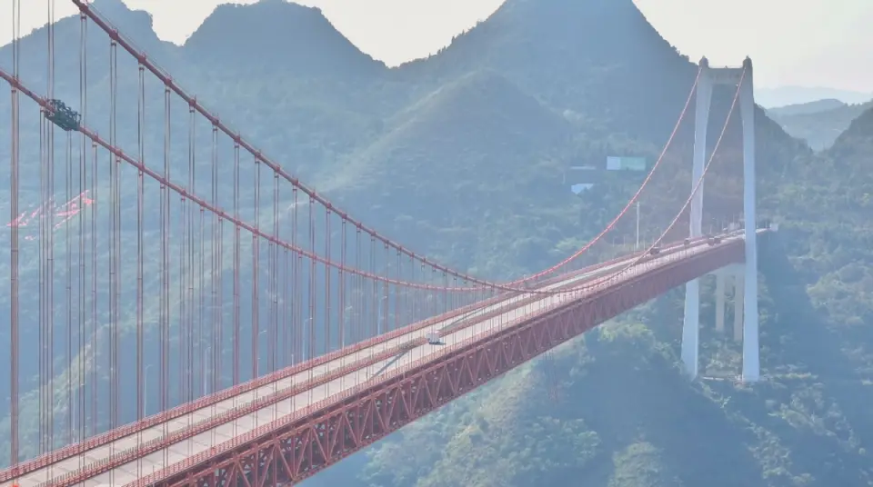 这是世界之巅的穿越,房车驶过565米深峡谷上空(桥高全球前列),720米主跨钢桁梁如巨龙横贯云贵。晨雾漫谷时,仿佛悬浮仙境。强烈推荐在桥侧观景台拍摄“车行云海”,雨季瀑布群从桥底倾泻,震撼力MAX!