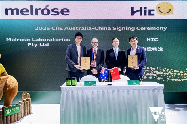 在澳贸委的见证中,HIC与澳大利亚天然健康品牌Melróse达成战略合作。作为由“澳洲鱼油之父”Geoff Steinicke创立的品牌,Melróse旗下鱼油、天然椰子油等产品深受全球消费者信赖。此次合作是品牌产品力与HIC平台力的强强联合,为澳洲优质品牌深耕中国市场树立了范本。澳贸委代表在致辞中表示,此次合作是澳中健康产业资源对接的重要成果,亦是两国经贸合作持续深化的生动实践,为促进中澳双边产业协同发展注入了新动能。