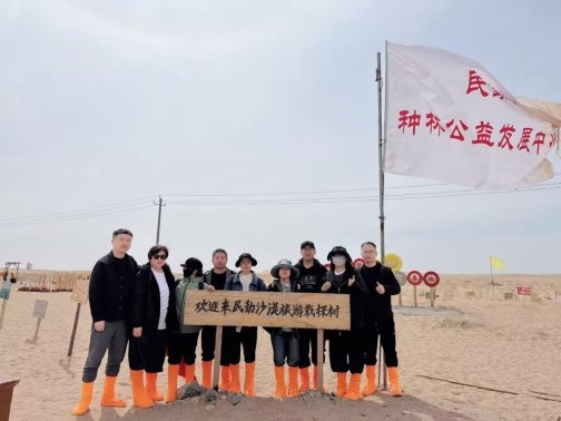 在甘肃民勤县,这片位于河西走廊东北部、被沙漠三面环抱的土地上,防沙治沙任务艰巨。阳光人寿武威中支的志愿者们奔赴民勤,开展“请到民勤种棵树”义务植树活动。大家挥锹挖坑、扶苗培土,一株株梭梭树苗在沙海中扎根,为筑牢河西走廊生态安全屏障添砖加瓦。