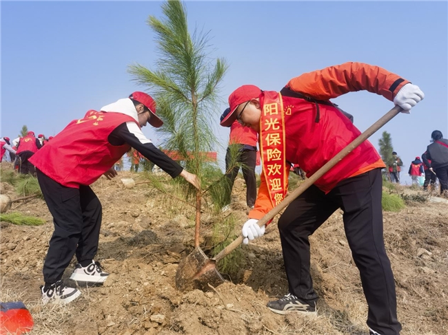 与此同时,阳光人寿陕西分公司的志愿者们也在春日里挥锹铲土、浇水灌溉,默契配合,为大地增添新绿;阳光人寿随州中支参与全市金融系统“共植青年绿林”活动,与行业青年职工分工协作,栽下一片新苗;阳光人寿襄阳中支则来到鱼梁洲北开发区,与监管部门种下一棵“共建树”,象征着政企携手守护金融与自然的“绿水青山”;阳光人寿广西分公司参与广西金融团工委主办的“雷锋精神薪火传 金融青年勇担当”义务植树活动,志愿者们身着统一服装,高效协作,百余株新苗扎根沃土。活动间隙,大家围绕绿色金融实践深入交流,探讨保险行业如何通过环保行动服务可持续发展。